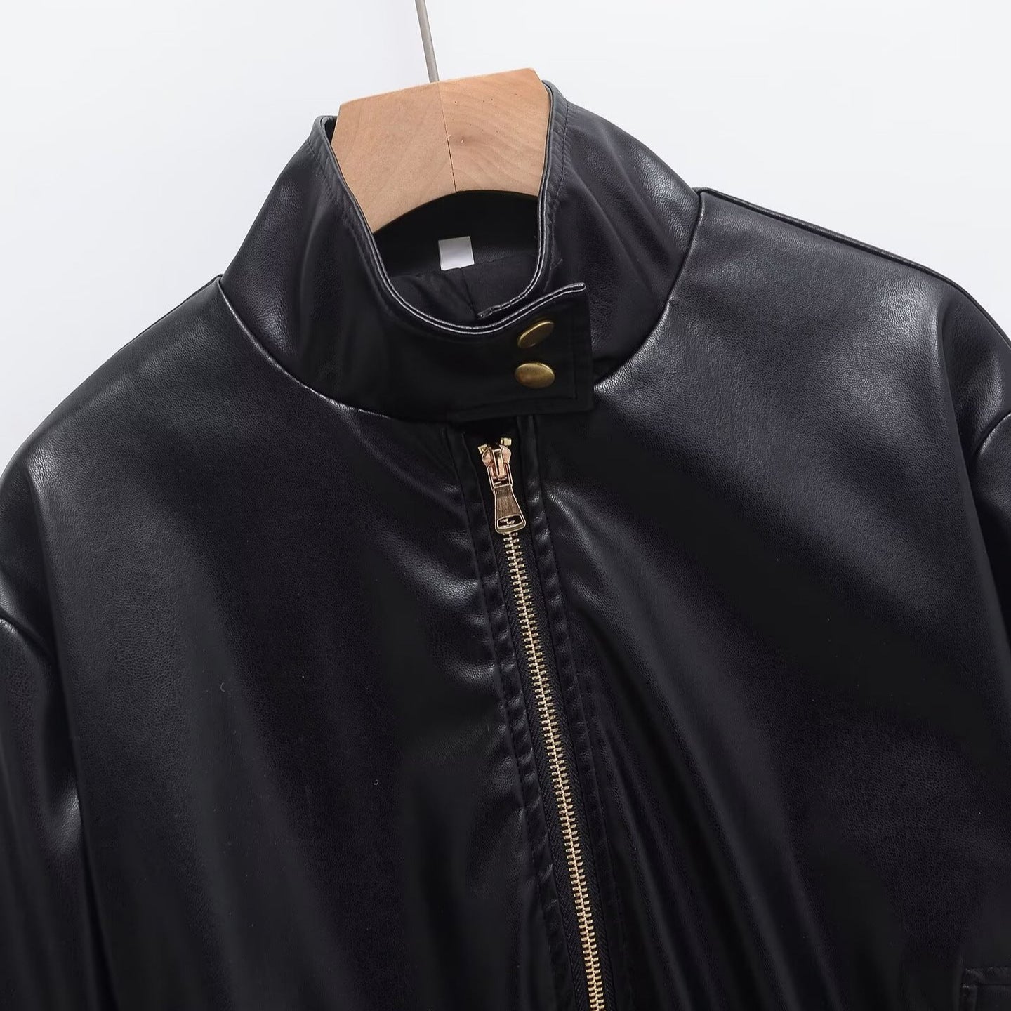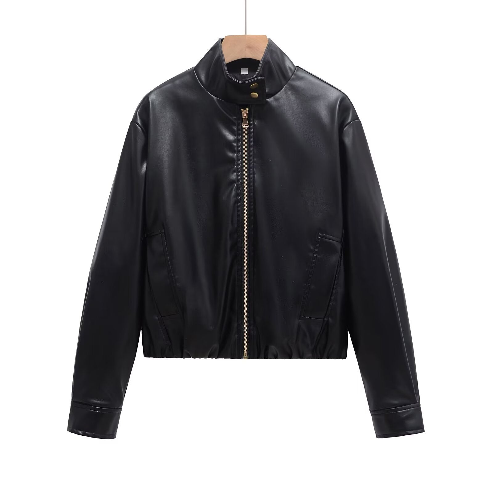 Black stand collar cropped leather jacket