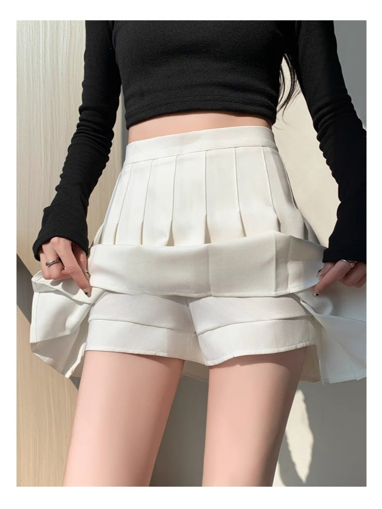 This high-waisted pleated mini skirt features a classic A-line silhouette that flatters the legs and elongates your figure, adding a youthful and fresh charm to any outfit. The skirt is designed with neatly stitched knife pleats that hold their shape and bring dynamic movement to your every step.